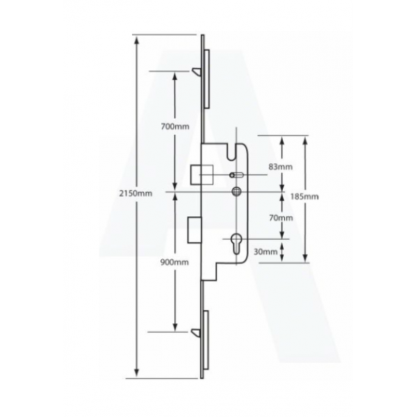 FERCO Lever Operated Latch & Deadbolt 20mm Faceplate - 2 Small Hook (tongues)