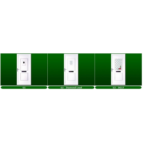 Our upvc replacement panel come in solid(no glass) or supplied with clear glass or an obscure glass of your choice on the top sections of the door as standard but please enquire if you wish to have the bottom parts glazed also. This also can be upgraded with various glass designs such as Bevelled Glass, Fused Tile, Georgian Bar, Resin Bevel and Decorative Coloured Film Glass designs, please enquire 01292 280111)