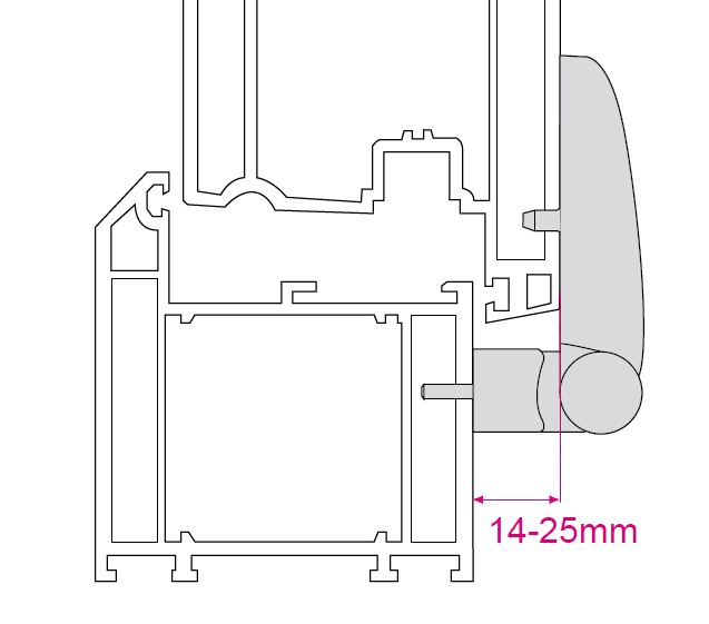 The hinge itself features four ?over-rebate bushes to fit over-rebate heights 14 - 24mm. Bushes are marked 14-20mm, 15-19mm,16-18mm and 17mm. The addition of a specially designed packer will increase the heights by a further 4mm to suit a range of profile systems.