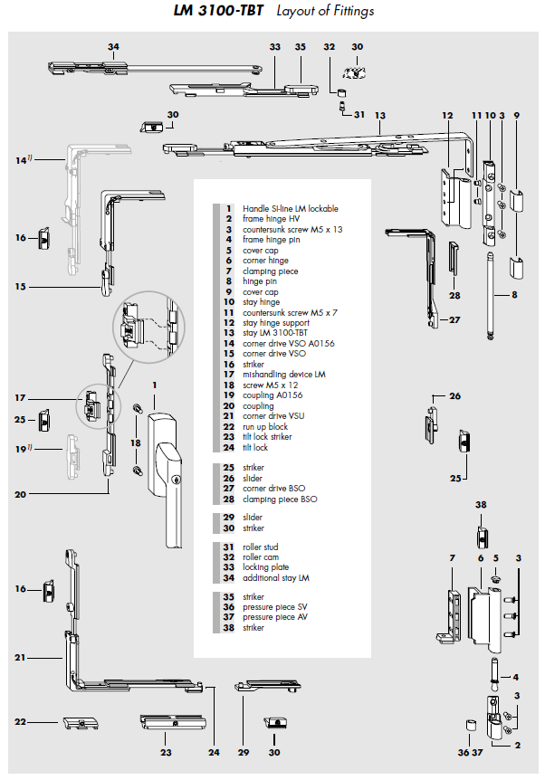 Siegenia LM 3100 locking side kit, this system is no longer manufactured and was replaced with the LM 4200 system.